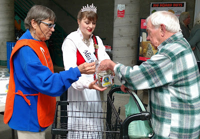 Lion Elda Armstrong teamed up with Miss Poulsbo Natalia Tucker in front of Central Market.
